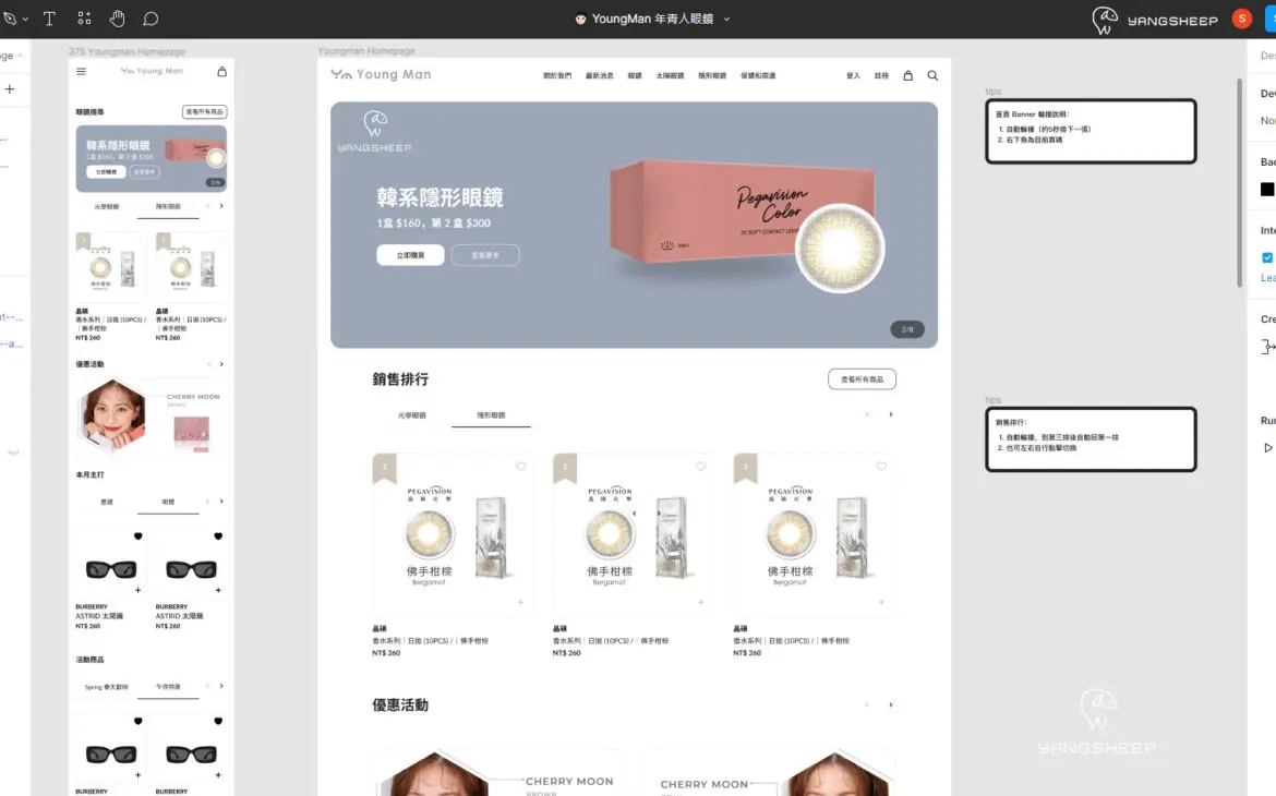 年青人眼鏡網站UI/UX視覺設計